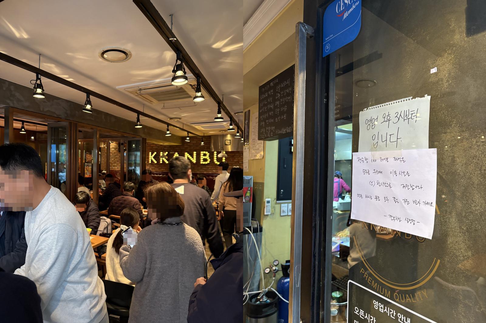 매장 한쪽에는 세 총수의 서명이 담긴 액자가 걸려 있고, 바깥 유리문에는 당시 회동 사진이 붙어 있다. 현장에는 인증 사진을 찍기 위해 찾은 사람들도 있었다. 사진을 찍으며 “부자 기운을 받고 간다”며 즐거워하는 이들도 있었다. 뜨거운 열기 속 현장은 이미 하나의 관광 명소가 된 듯했다.