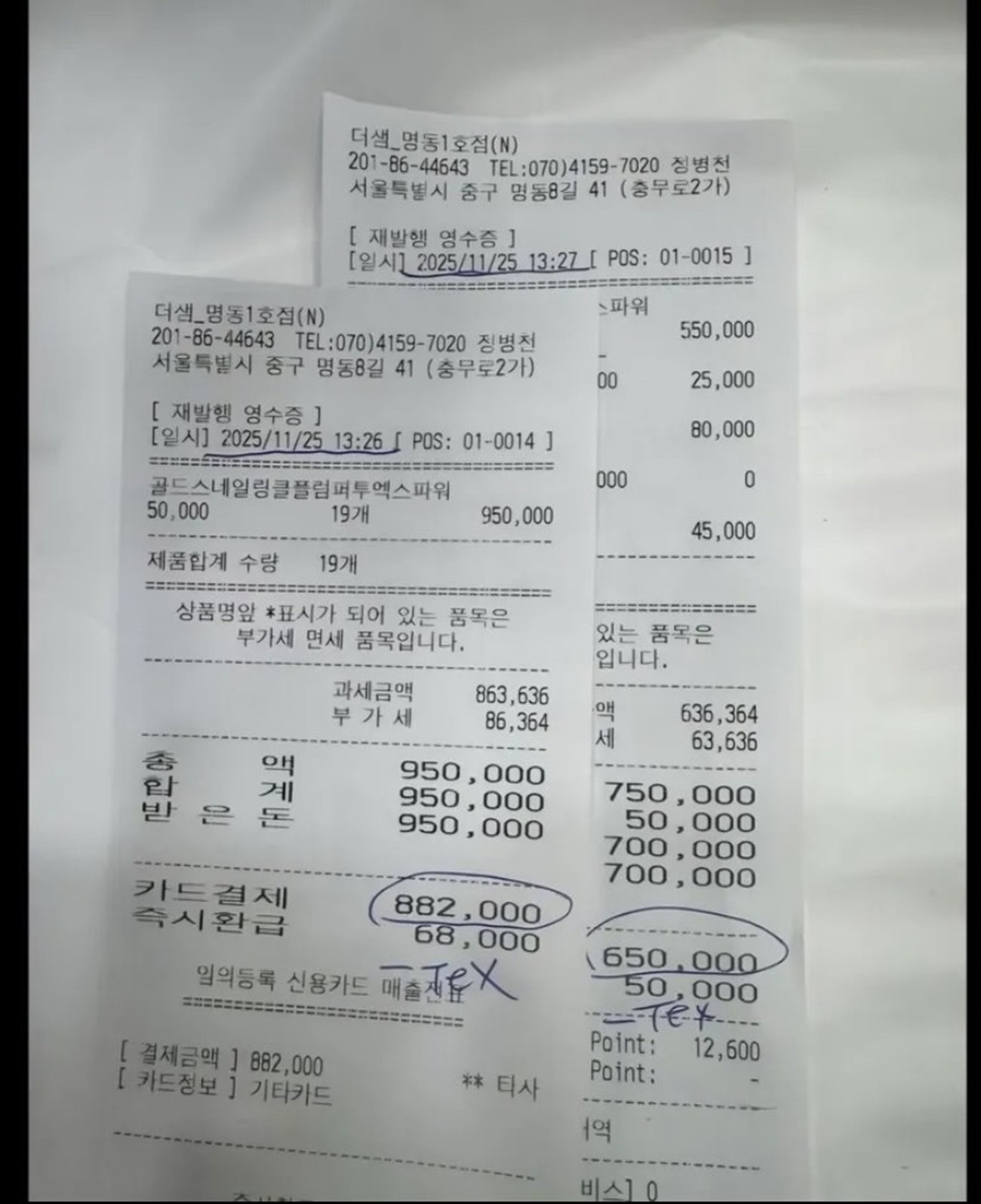 더샘 명동점을 둘러싼 ‘바가지 논란’이 SNS에서 확산된 가운데, 본사가 “환불 거부 사실 없다”고 해명했다. 영수증 공개로 43개 품목 구매 사실이 확인되며 논란은 반전됐다. 스레드 캡처