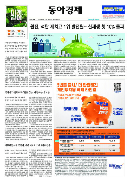 원전, 석탄 제치고 1위 발전원… 신재생 첫 10% 돌파