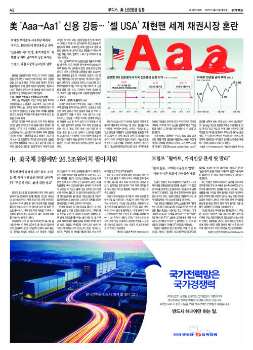 무디스, 美 신용등급 강등… 108년만에 최고지위 잃어
