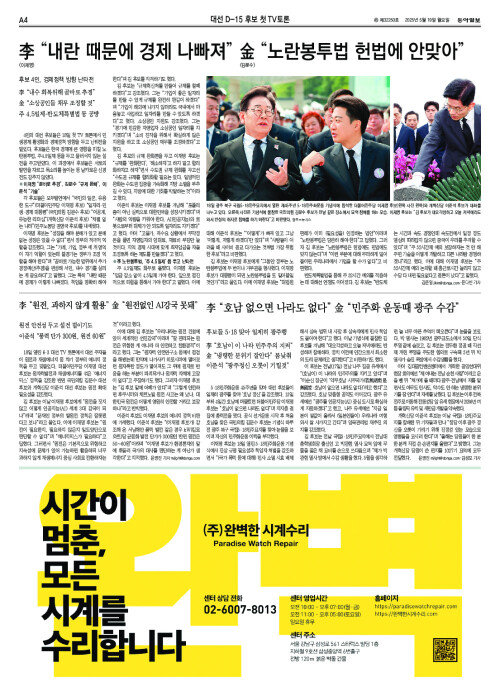 [사설]대선후보 첫 TV 토론… ‘성장’엔 공감 ‘노동’엔 이견