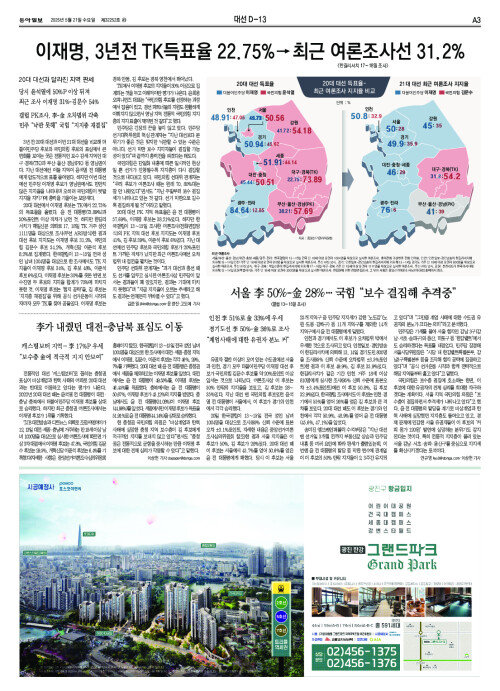 3년전 ‘7대 10’ 졌던 李, 영남 빼고 모두 우세