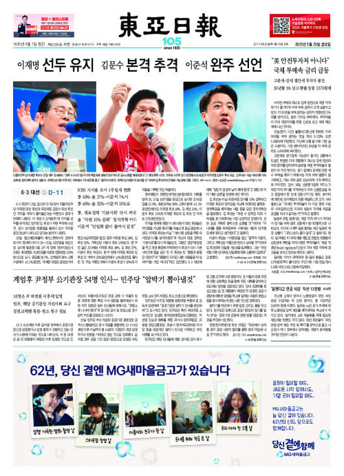 이재명 선두 유지, 김문수 본격 추격, 이준석 완주 선언