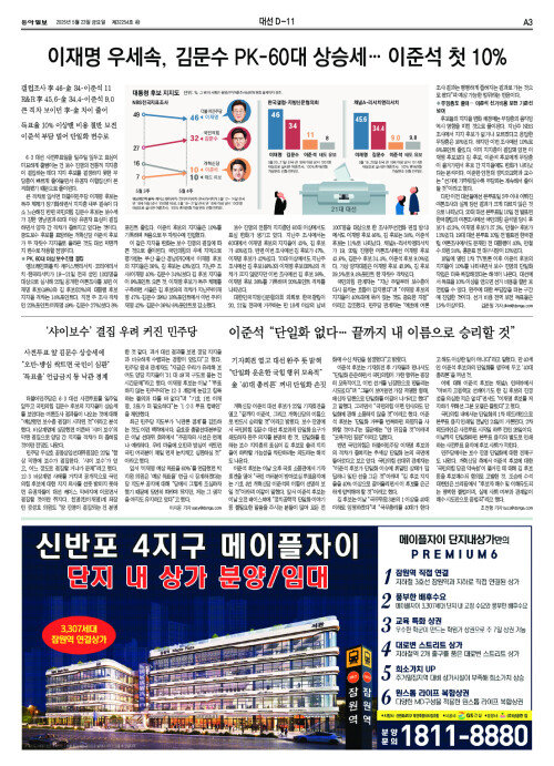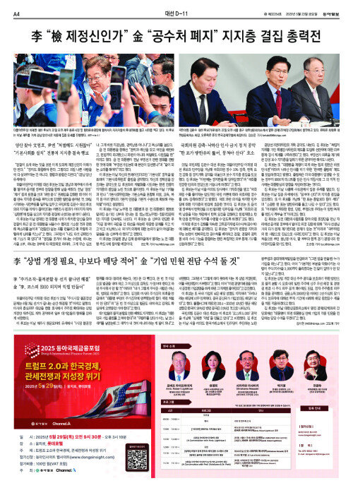 이재명 우세속, 김문수 PK-60대 상승세… 이준석 첫 10%