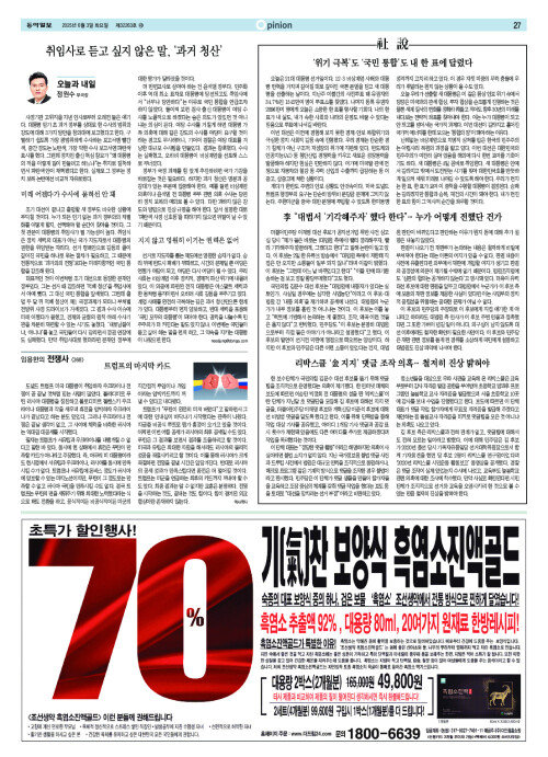 [오늘과 내일/정원수]취임사로 듣고 싶지 않은 말, ‘과거 청산’