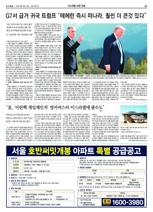 G7서 급거 귀국 트럼프 “테헤란 즉시 떠나라, 훨씬 더 큰것 있다”
