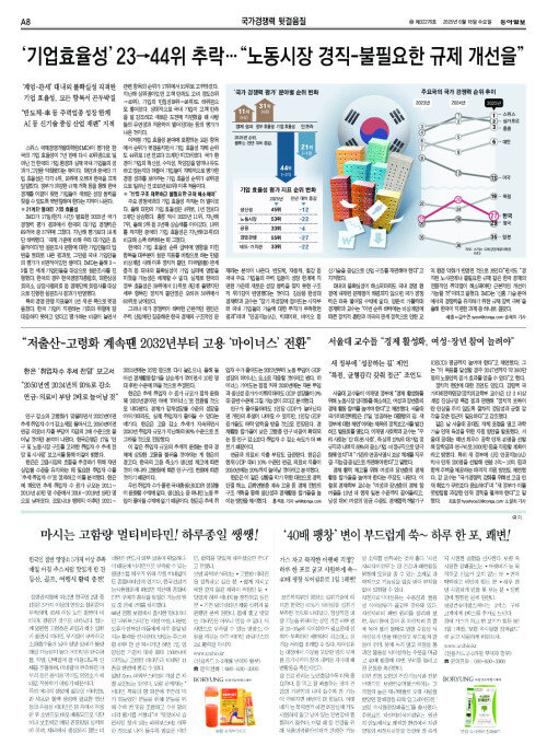 ‘기업효율성’ 23→44위 추락… “노동시장 경직-불필요한 규제 개선을”
