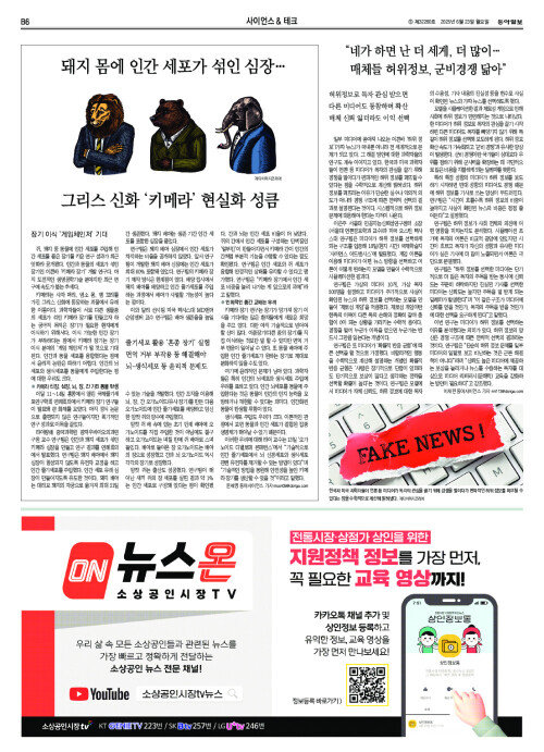 돼지 몸에 인간 세포가 섞인 심장… 그리스 신화 ‘키메라’ 현실화 성큼