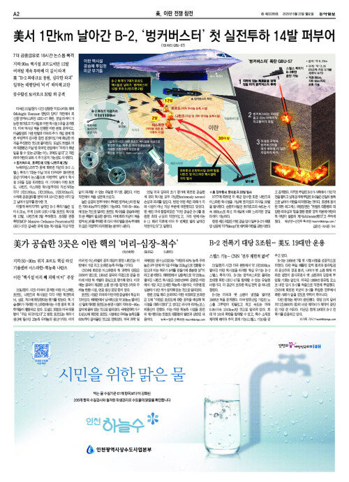 美서 1만㎞ 날아간 B-2, ‘벙커버스터’ 첫 실전투하 14발 퍼부어