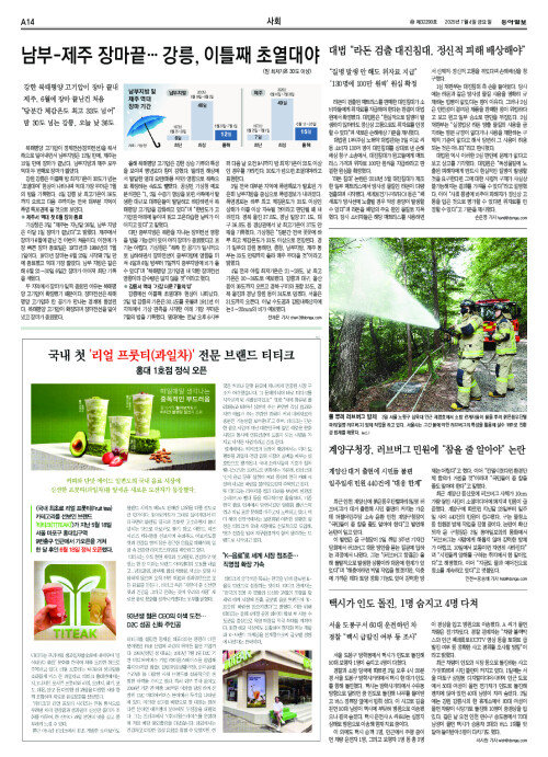 남부-제주 장마끝… 강릉, 이틀째 초열대야