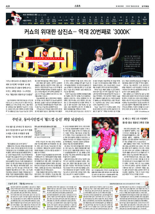 커쇼의 위대한 삼진쇼… 역대 20번째로 ‘3000K’