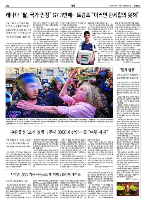 캐나다 “팔, 국가 인정” G7 3번째… 트럼프 “이러면 관세합의 못해”