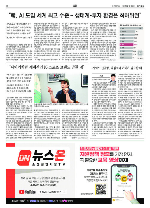 “韓, AI 도입 세계 최고 수준… 생태계-투자 환경은 최하위권”