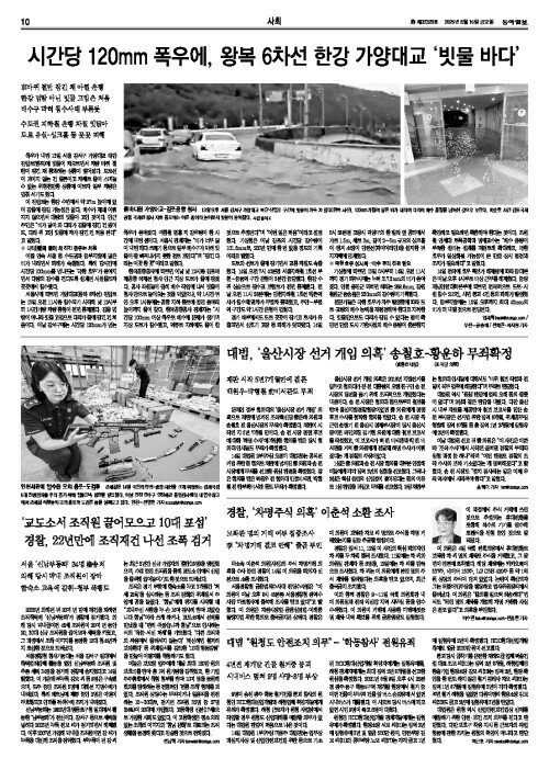 시간당 120㎜ 폭우에, 왕복 6차선 한강 가양대교 ‘빗물 바다’