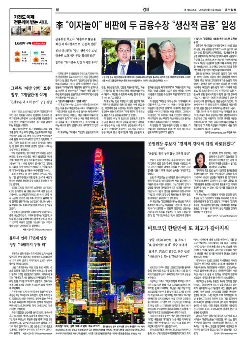 李 “이자놀이” 비판에 두 금융수장 “생산적 금융” 일성
