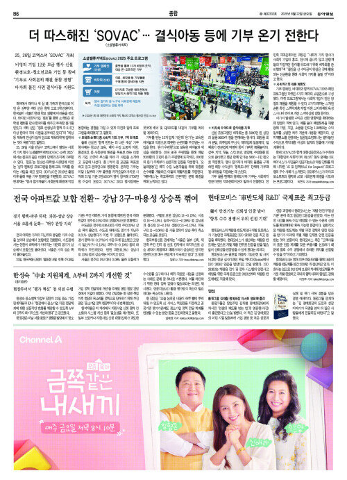 더 따스해진 ‘SOVAC’… 결식아동 등에 기부 온기 전한다