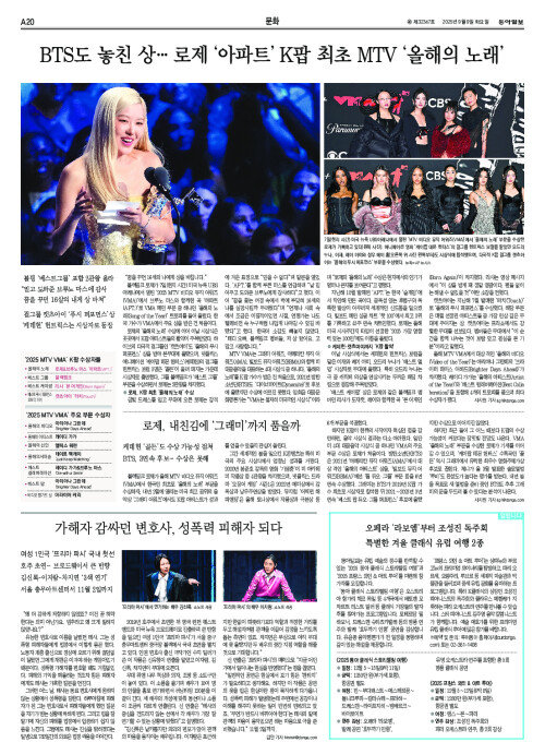 BTS도 놓친 상… 로제 ‘아파트’ K팝 최초 MTV ‘올해의 노래’