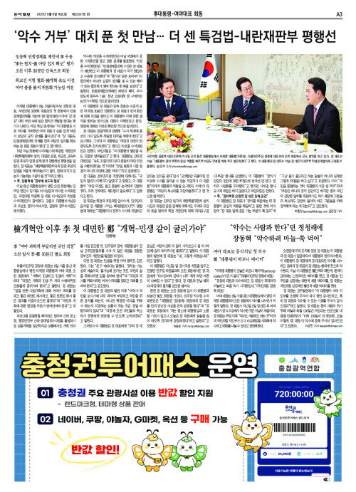 ‘악수 거부’ 대치 푼 첫 만남… 더 센 특검법-내란재판부 평행선