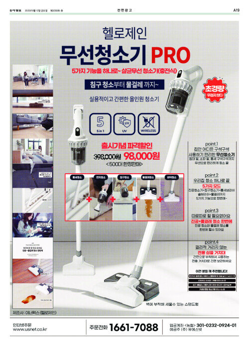 항공모터로 강력, 청소 소리는 조용… ‘국제 가전쇼 호평’ 무선 청소기 출시