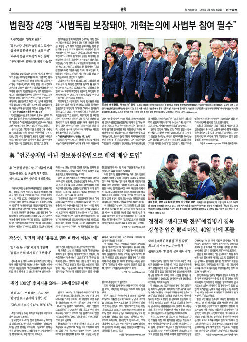 법원장 42명 “사법독립 보장돼야, 개혁논의에 사법부 참여 필수”