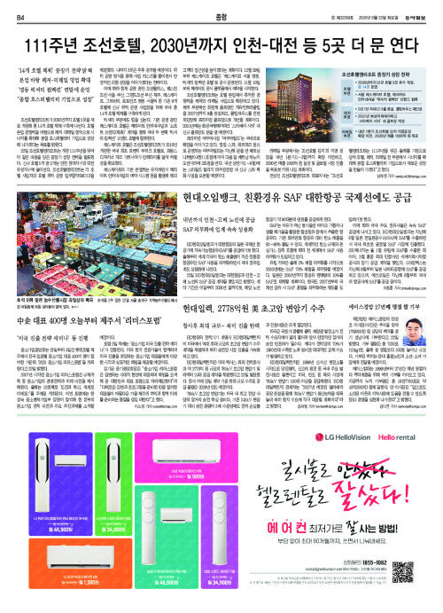 111주년 조선호텔, 2030년까지 인천-대전 등 5곳 더 문 연다