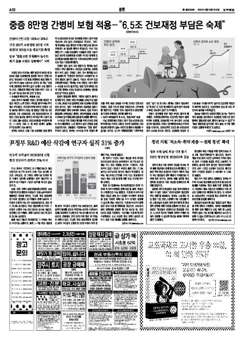 [사설]중증 간병비 70%도 건보서 지원… 3년 후 재정 바닥나는데