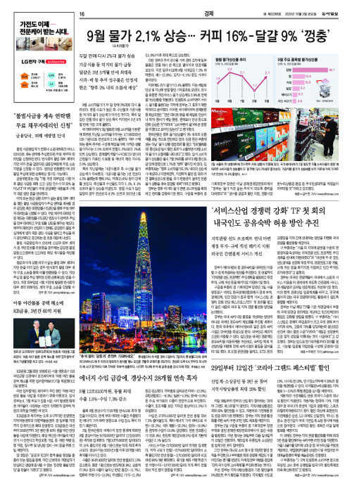 9월 물가 2.1% 상승… 커피 16%-달걀 9% ‘껑충’