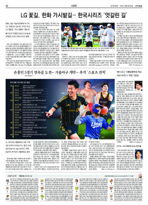 손흥민 5경기 연속골 도전… 가을야구 개막… 추석 ‘스포츠 잔치’
