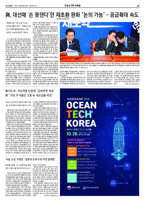 與, 대선때 ‘손 못댄다’던 재초환 완화 “논의 가능”… 공급확대 속도