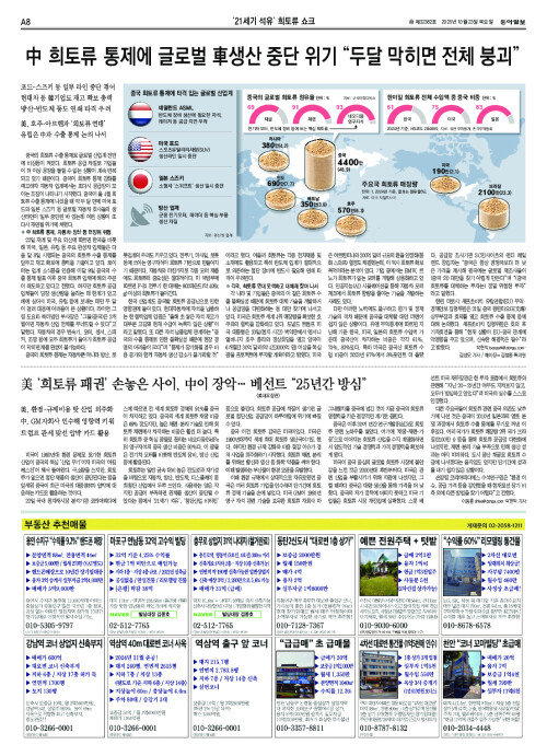 中 희토류 통제에 글로벌 車생산 중단 위기 “두달 막히면 전체 붕괴”
