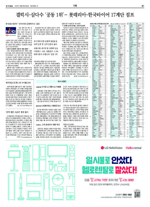 갤럭시-삼다수 ‘공동 1위’… 롯데리아-한국타이어 17계단 점프