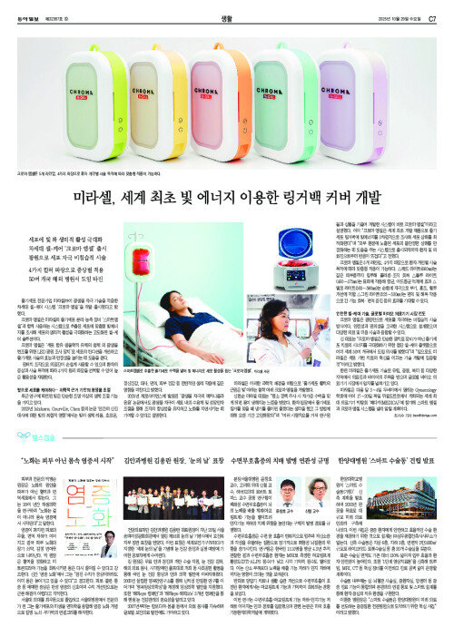 미라셀, 세계 최초 빛 에너지 이용한 링거백 커버 개발