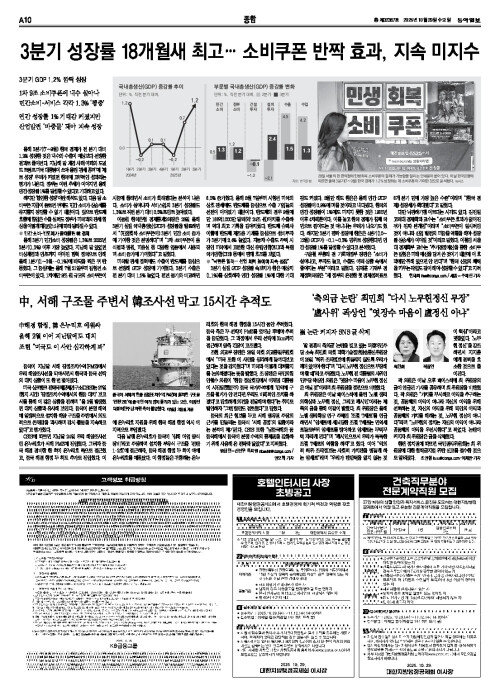 3분기 1.2% ‘깜짝 성장’… 소비 쿠폰-반도체 효과