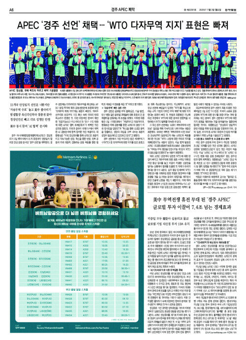 APEC ‘경주 선언’ 채택… ‘WTO 다자무역 지지’ 표현은 빠져
