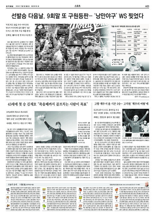 선발승 다음날, 9회말 또 구원등판… ‘낭만야구’ WS 찢었다