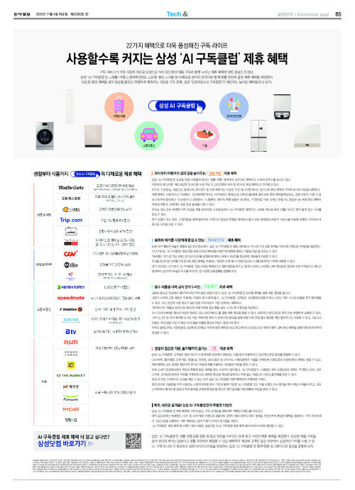 [Tech&]22가지 혜택으로 더욱 풍성해진 구독 라이프… 사용할수록 커지는 삼성 ‘AI 구독클럽’ 제휴 혜택