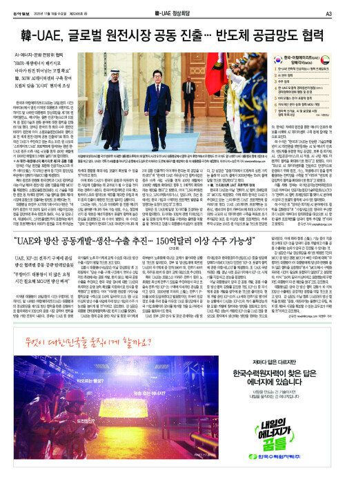韓-UAE, 글로벌 원전시장 공동 진출… 반도체 공급망도 협력