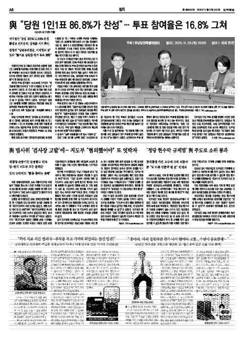 與 “당원 1인1표 86.8%가 찬성”… 투표 참여율은 16.8% 그쳐