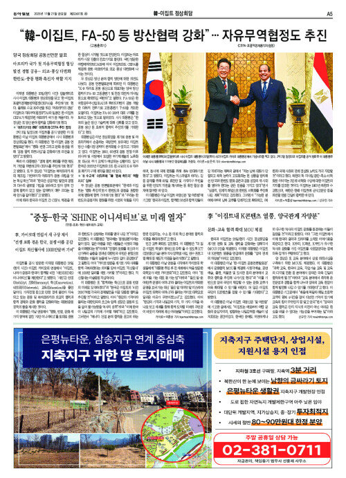 “韓-이집트, FA-50 등 방산협력 강화”… 자유무역협정도 추진
