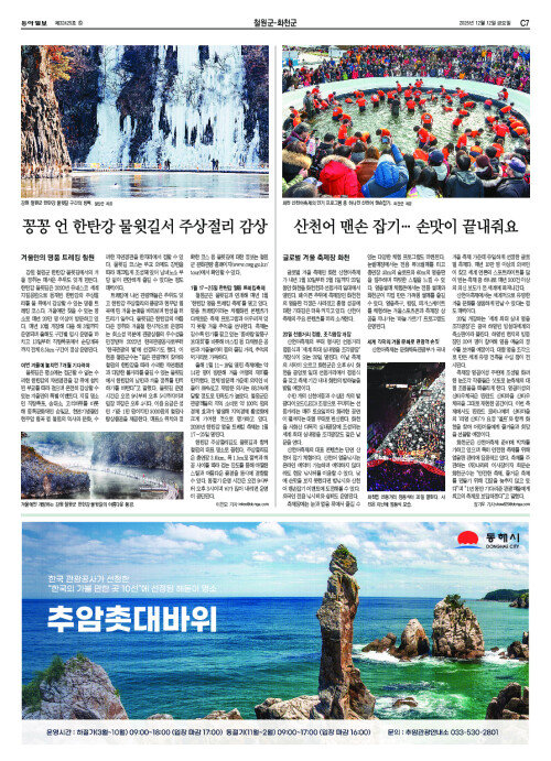꽁꽁 언 한탄강 물윗길서 주상절리 감상