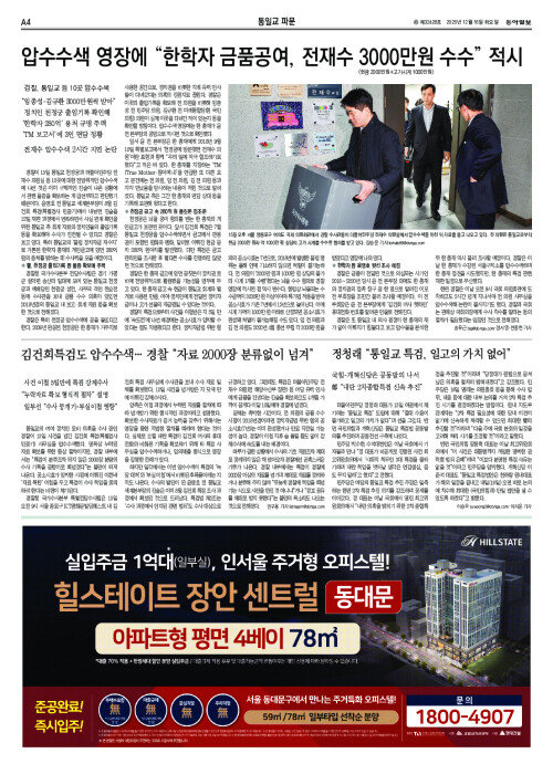 압수수색 영장에 “한학자 금품공여, 전재수 3000만원 수수” 적시