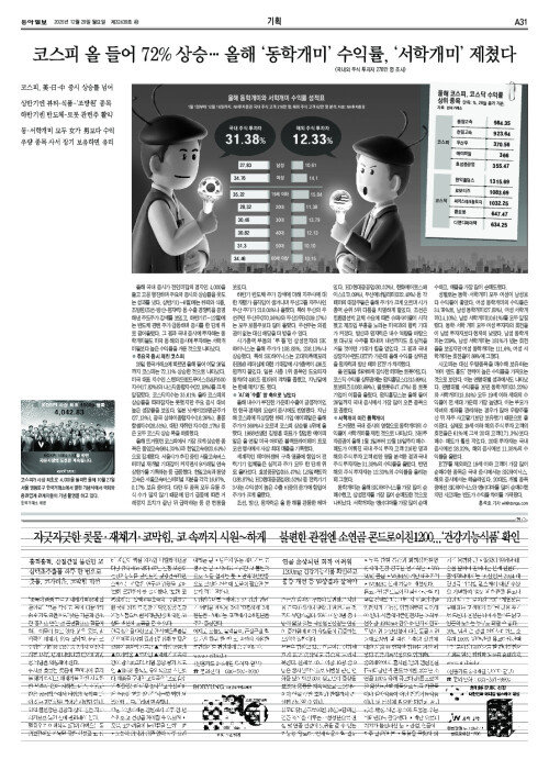 코스피 올 들어 72% 상승… 올해 ‘동학개미’ 수익률, ‘서학개미’ 제쳤다