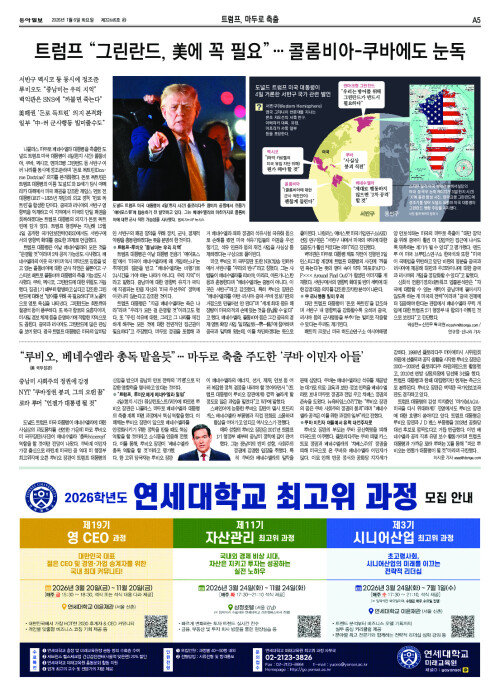 트럼프 “그린란드, 美에 꼭 필요”… 콜롬비아-쿠바에도 눈독
