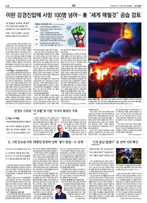 이란 강경진압에 사망 100명 넘어… 美 “세게 때릴것” 공습 검토