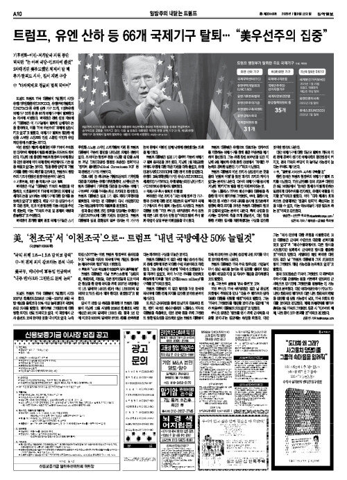 트럼프, 유엔 산하 등 66개 국제기구 탈퇴… “美우선주의 집중”