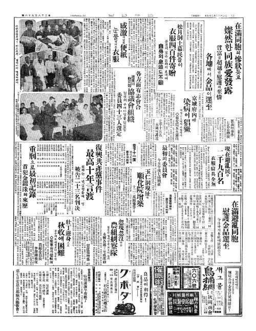 - 在滿同胞(재만동포)의慘狀(참상)듯고 燦然(찬연)한同族愛發露(동족애발노)