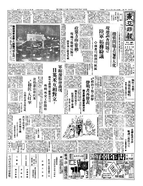 - 機構問題去益重大化(기구문제거익중대화) 現地調查問題(현지조사문제)로 陸軍(륙군)、拓務紛議(탁무분의)
