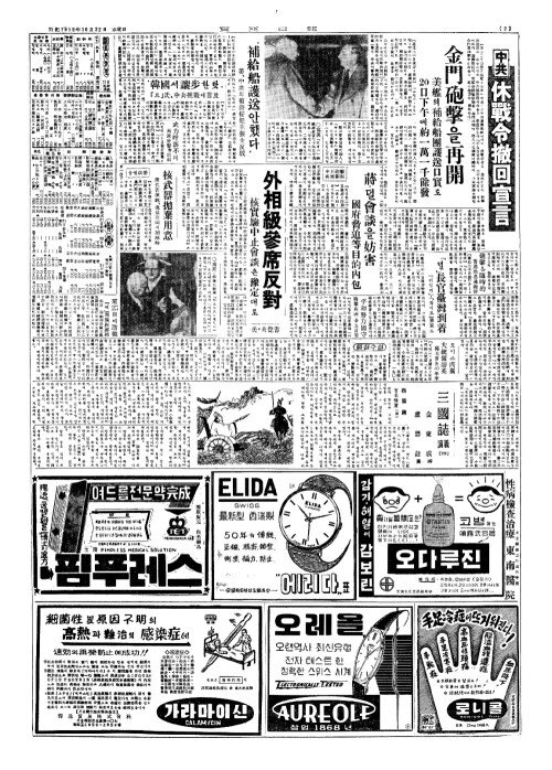 - 平和努力固守(평화노력고수) 砲擊再開(포격재개) 듣고言明(언명)
