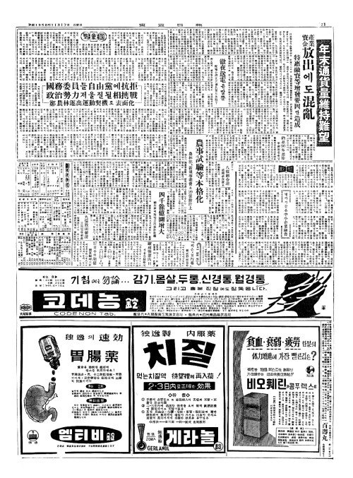 - "豫算案(예산안)과保安法案(보안법안) 年內(년내)로通過(통과)"