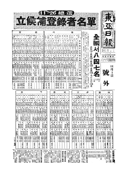 11·26總選立候補登錄者名單(총선립후보등록자명단)